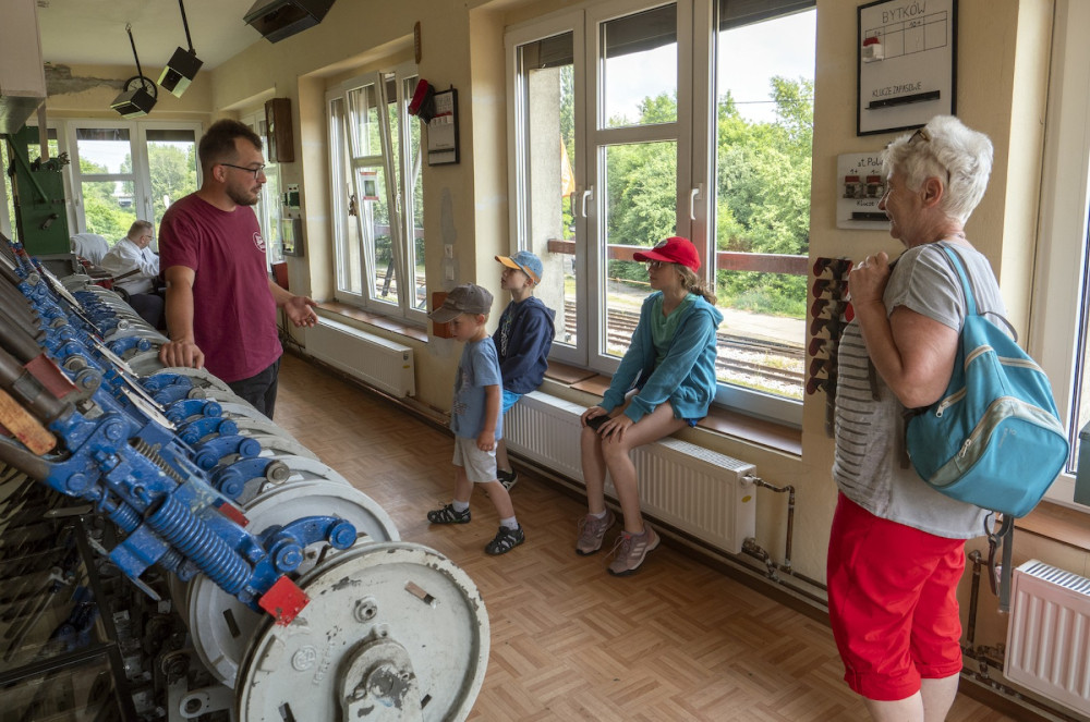 Była też wystawa taboru kolei wąskotorowej. Podczas spaceru po terenie stacji przewodnicy opowiadali o historii i roli Górnośląskich Kolei Wąskotorowych, pokazali historyczne wagony i lokomotyw. Podczas zwiedzania nastawni dysponującej BKw objaśnili tajniki pracy dyżurnego ruchu oraz zaprezentowali działanie mechanicznych scentralizowanych urządzeń sterowania ruchem kolejowym.