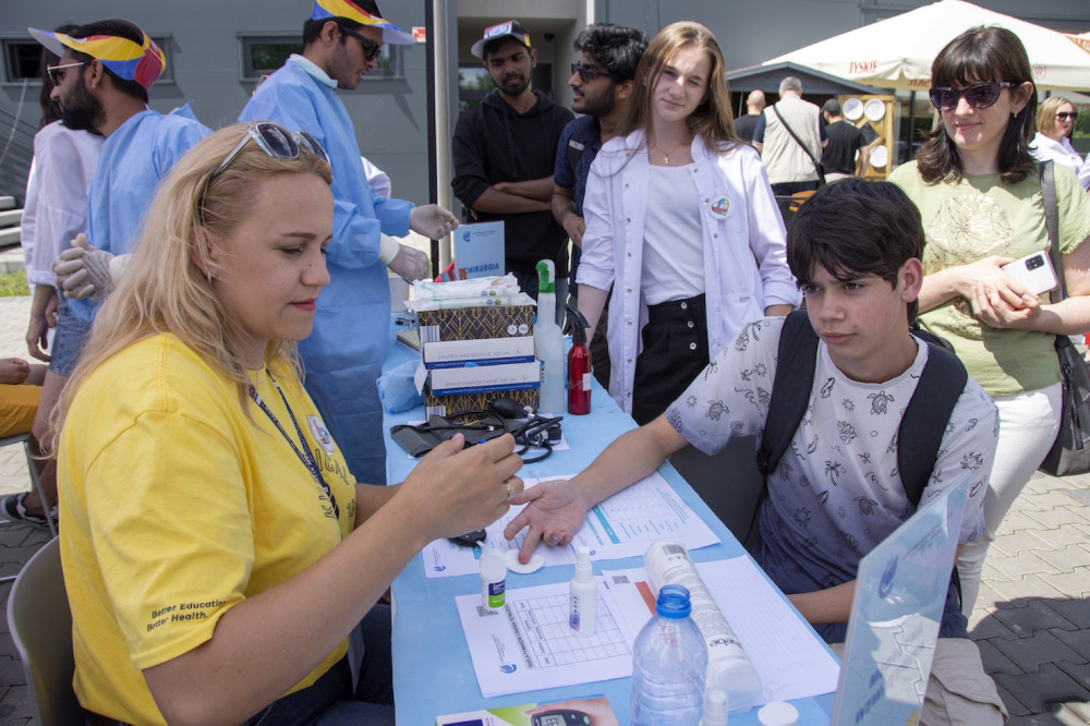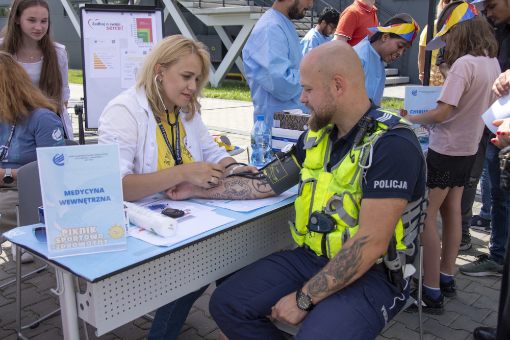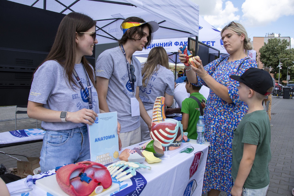 Przedstawiciele uczelni zaprezentowali też podstawowe techniki szycia chirurgicznego, spektakularne badania chemiczne oraz pokazali jak działa EKG. FIT Progress Klub Zdrowego Stylu Życia z Katarzyną Szołtysik-Kaczmarek oferował pomiar tkanki tłuszczowej oraz konsultacje dietetyczne.