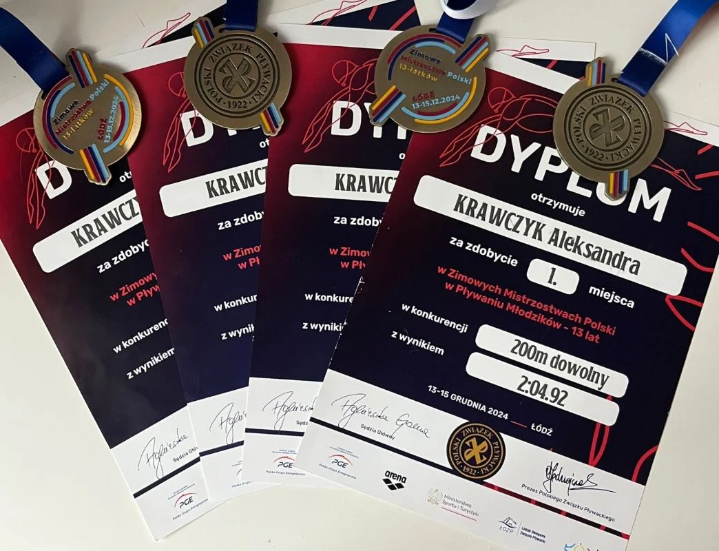 W dniach 13-15 grudnia na pływalni Zatoka Sportu w Łodzi odbyły się Zimowe Mistrzostwa Polski Młodzików (13 lat) w pływaniu. Znakomicie spisała się Aleksandra Krawczyk, która zdobyła cztery złote medale. Zawodniczka UKS Na Fali Bytom triumfowała na 50, 100, 200 m stylem dowolnym oraz 200 m zmiennym.