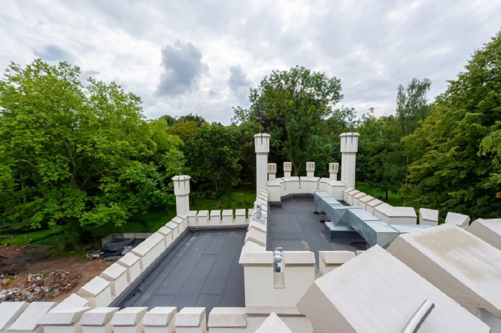 Warto dodać, że mimo konieczności przeprowadzenia dodatkowych robót budowlanych, zakres realizowanych prac, które już wykonano jest bardzo zaawansowany. Zakończono już roboty konstrukcyjne /murowe i żelbetowe/, prace tynkarskie, roboty związane z montażem płytek w pomieszczeniach sanitarnych, jak również prace przy schodach w wieży wodnej, stolarkę okienną i drzwiową, a także zaawansowane są prace związane z instalacją wodną, kanalizacyjną, elektryczną oraz wentylacyjną. W najbliższym czasie w oficynie pałacu realizowane będą prace związane z malowaniem ścian i sufitów, montażem i rozruchem sprzętu elektrycznego, zaś na terenie rumowiska wykonana będzie płyta żelbetowa przed tarasem pod ewentualną widownię. Rozpocznie się też remont pozostałych murów i ich uzupełnienie po obrysie wyburzonego pałacu.