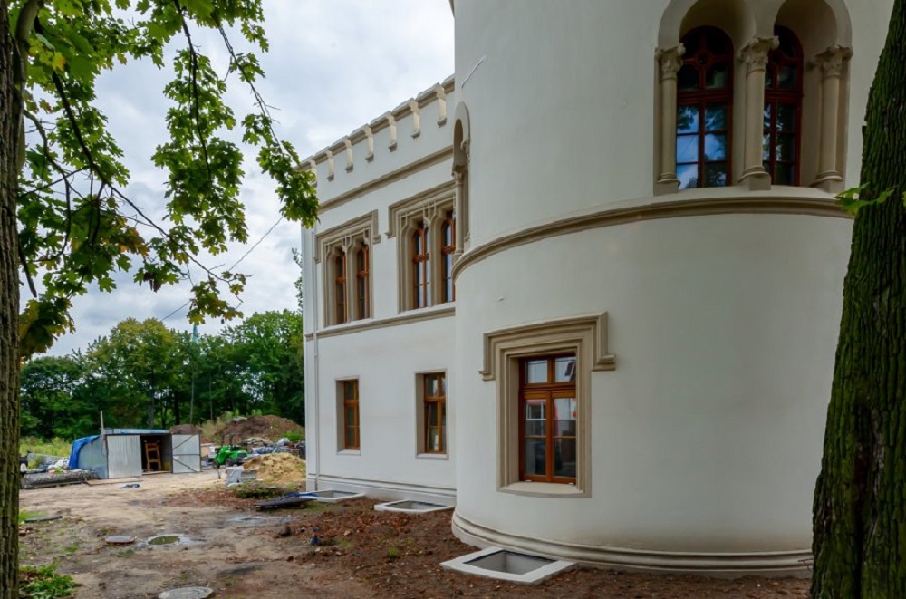 Przypomnijmy, że wprowadzenie projektu zamiennego było spowodowane odkryciem w 2019 roku części kaplicy pałacowej oraz krypty. Zgodnie z projektem zamiennym krypta zostanie odgruzowana i zabezpieczona przed dalszą degradacją oraz oddzielona od reszty budynku drzwiami,a także oświetlona w części wejściowej i przeszklona. Pozostałości kaplicy tj. oryginalne mury ceglane, zostaną pozostawione jako trwała ruina, zabezpieczone, wyrównane i otynkowane tynkiem cementowo-wapiennym. Wśród dodatkowych prac, jakie wkrótce zrealizuje wykonawca – firma „DeS” z Krakowa będzie między innymi: zachowanie sklepienia kolebkowego w piwnicy, wykonanie posadzki z płyt gresowych na tarasie czy wykończenie detali architektonicznych. Ponadto wyeksponowany zostanie obrys pałacu na rumowisku, istniejące mury będą podmurowane oraz zabezpieczone podwzględem konserwatorskim, zmieniony będzie układ placów i ścieżek wokół oficyny pałacu i rumowiska.