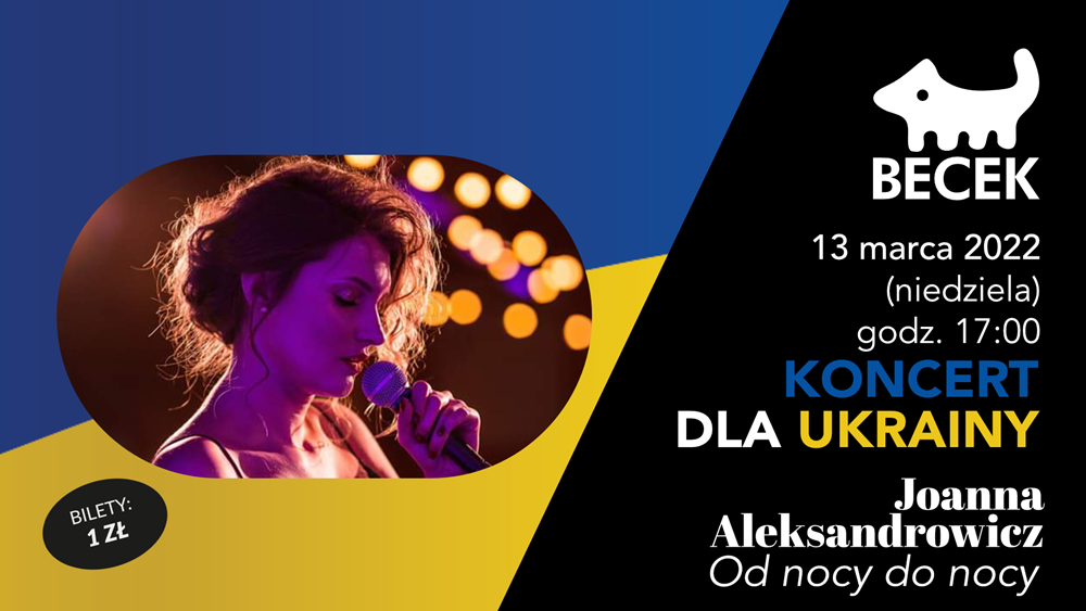 Bytomskie Centrum Kultury zaprasza 13 marca 2022 o godz. 17.00 na koncert "Od nocy do nocy", w wykonaniu Joanny Aleksandrowicz dedykowany ogarniętej wojną Ukrainie.