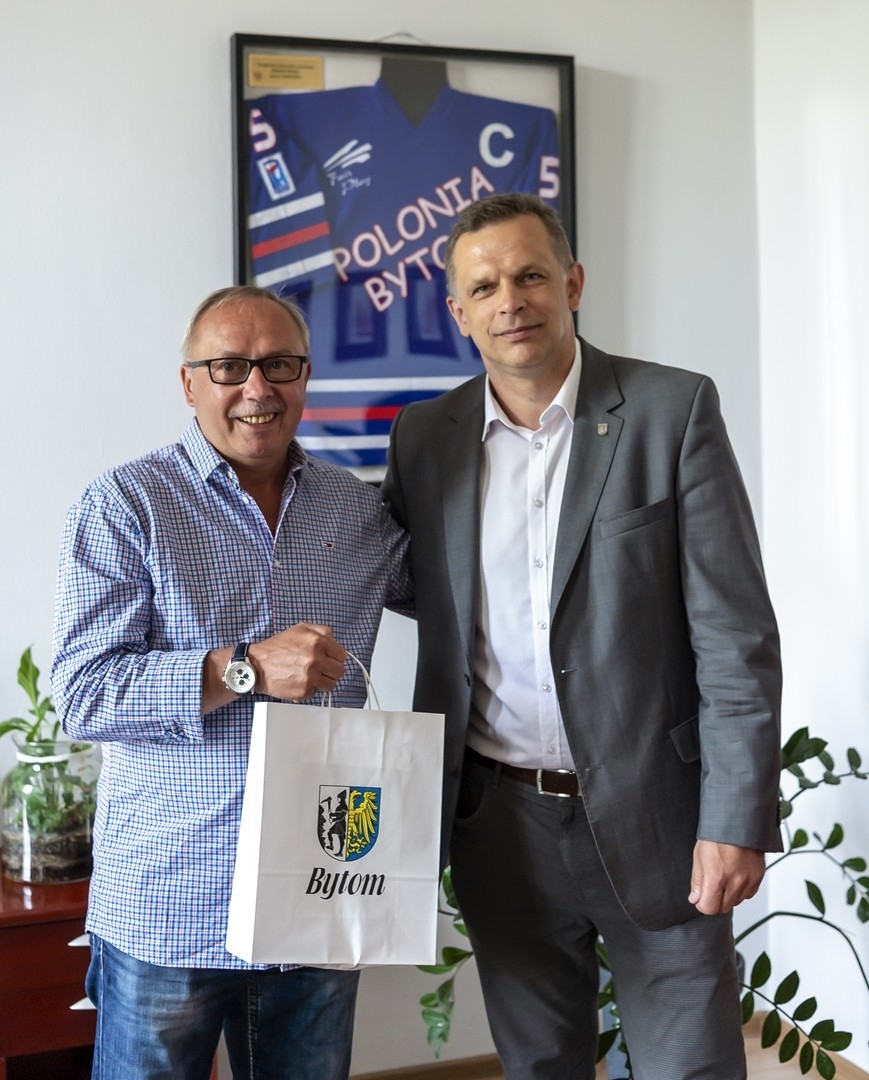 Krystian Michna, czterokrotny mistrz Polski, przyjechał do Bytomia. Z byłym obrońcą spotkał się z zastępca prezydenta Bytomia Adam Fras.