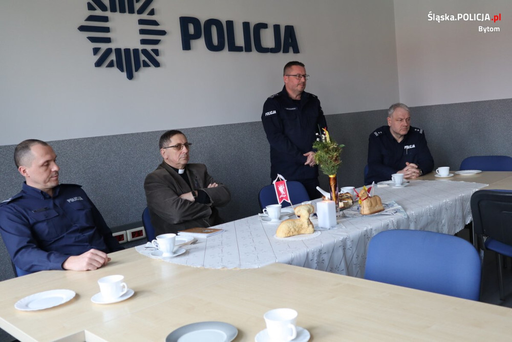 Szef bytomskich mundurowych podziękował policjantom za zaangażowanie oraz dobre wyniki w służbie w mijającym kwartale oraz życzył wszystkim spokojnych świąt, spędzonych w gronie rodziny i bliskich. Nad duchową oprawą uroczystości czuwał kapelan śląskiej Policji ksiądz Joachim Gondro. Na koniec zgromadzeni goście złożyli sobie życzenia i symbolicznie podzielili tradycyjnym wielkanocnym poczęstunkiem.