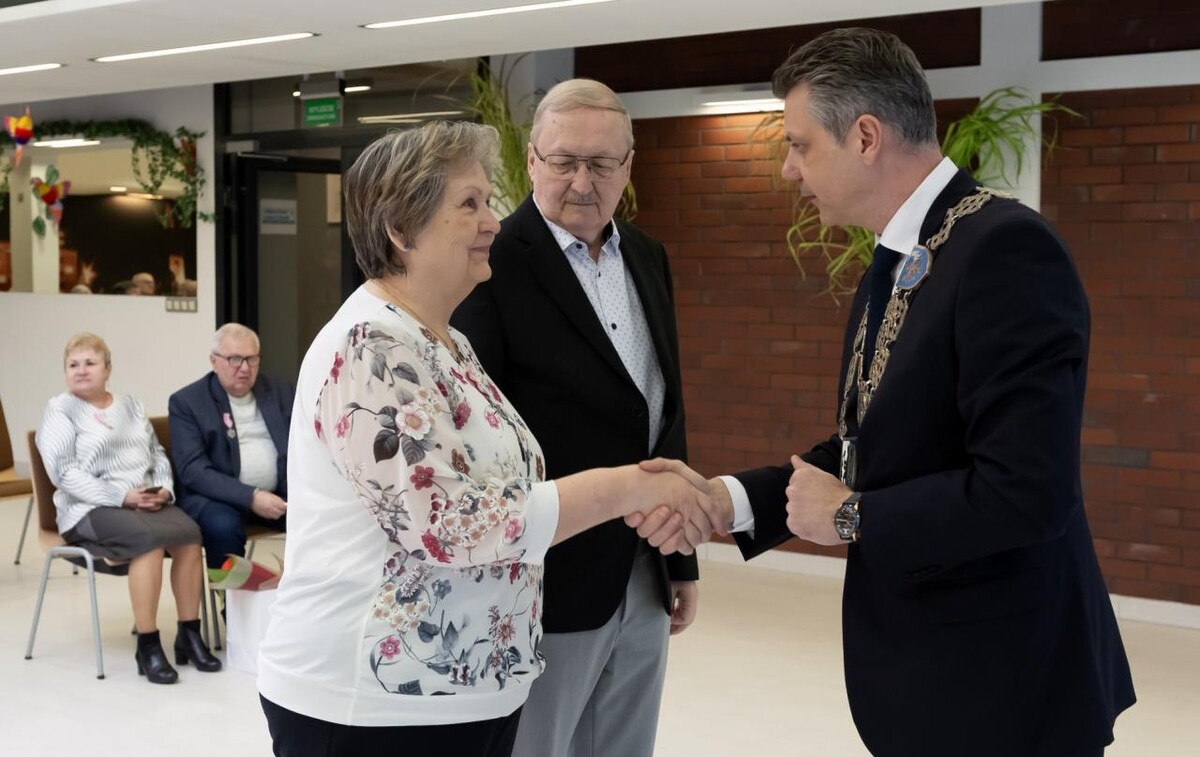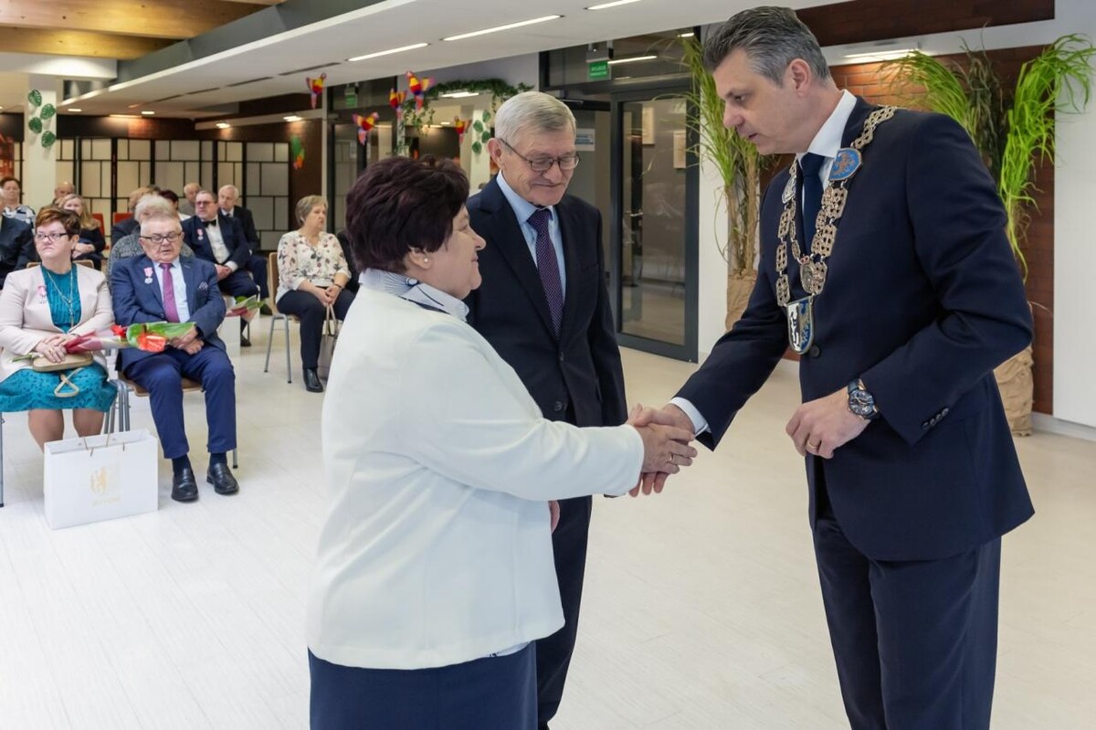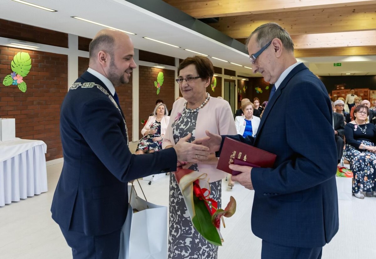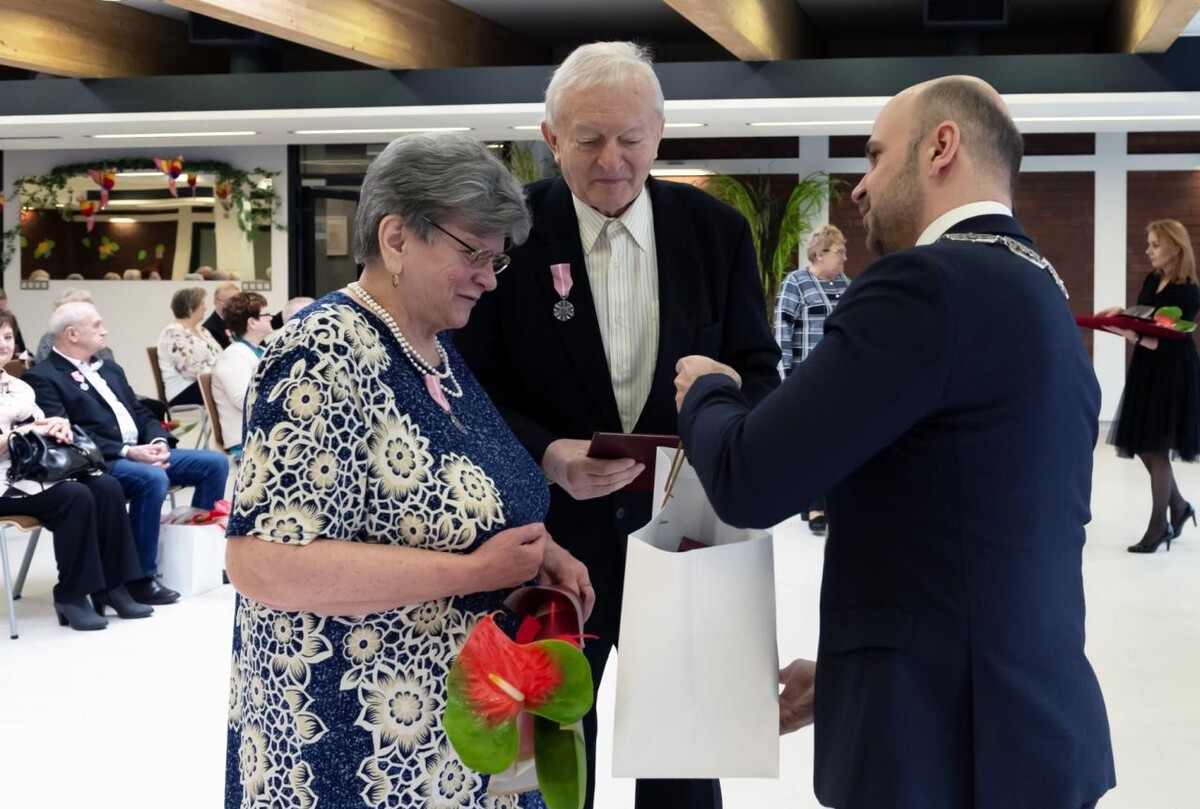 Dostojni jubilaci zostali zaproszeni do Restauracji Świetlik, gdzie prezydent Mariusz Wołosz oraz przewodniczący Rady Miejskiej Michał Staniszewski złożyli im gratulacje.