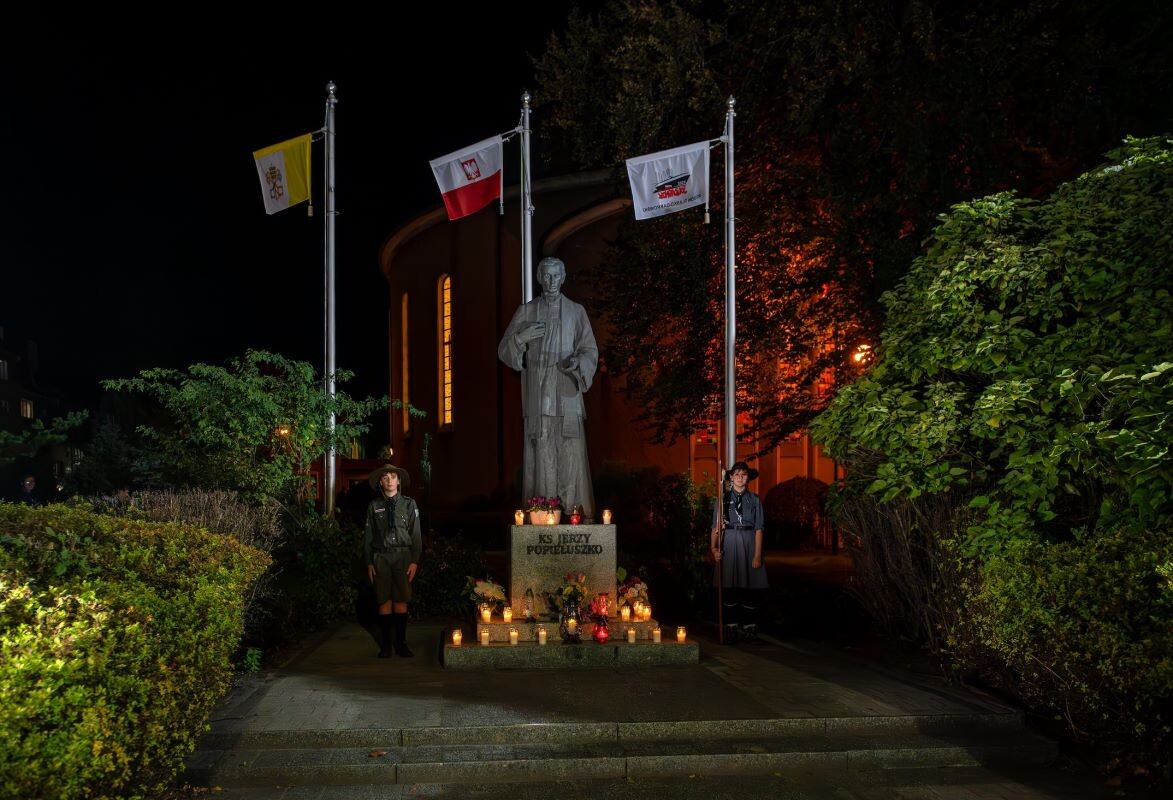 Wieczorem odprawiona została msza święta za ojczyznę, której przewodniczył ks. bp. Andrzej Iwanecki. Po nabożeństwie poczty sztandarowe, władze miasta na czele z wiceprezydentem Adamem Frasem oraz bytomscy radni złożyli kwiaty pod pomnikiem bł. ks. Jerzego Popiełuszki. By upamiętnić tegoroczne okrągłe obchody upamiętniające wizytę duszpasterza w naszym mieście, posadzony został dąb.