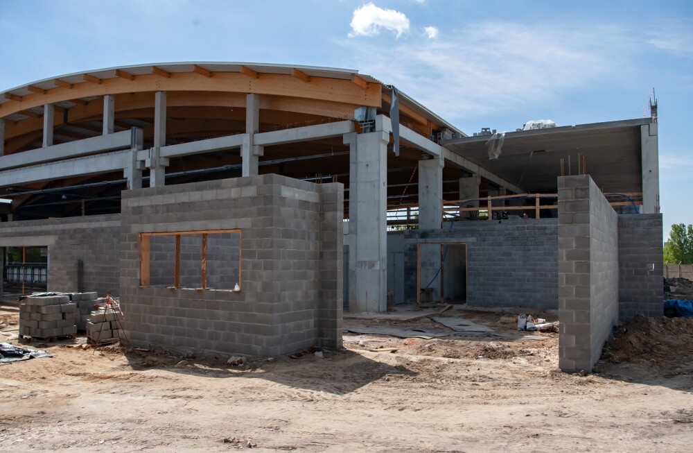 Wykonawca rozpoczął już prace murarskie w zachodniej części obiektu, kanalizację deszczową i sanitarną po południowej stronie, a także roboty związane z montażem wentylacji. W czerwcu ruszą także prace z układem drogowym po wschodniej stronie obiektu.