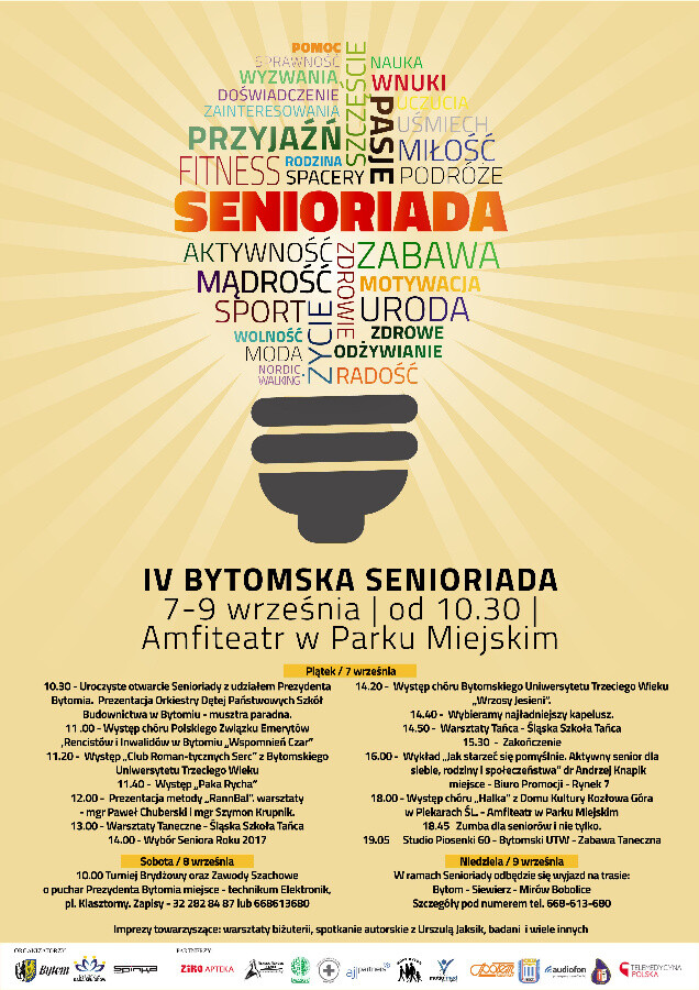 W sobotę Bytomska Senioriada rozpocznie się o godzinie 10:00, a zakończy się późnym wieczorem zabawą taneczną. Wcześniej będzie można wziąć udział w turnieju brydżowym, warsztatach tańcach i zajęciach zumby. Dodatkowo, w Biurze Promocji Bytomia odbędzie się wykład „Jak starzeć się pomyślnie. Aktywny senior dla siebie, rodziny i społeczeństwa”.