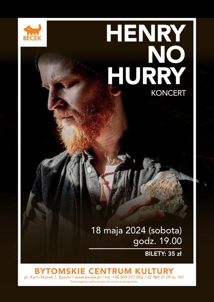 Już 18 maja w Bytomskim Centrum Kultury (sobota) o godz. 19:00 odbędzie się koncert: Henry No Hurry! Jest to projekt na poły muzyczny, na poły podróżniczy i po trosze pisarski.