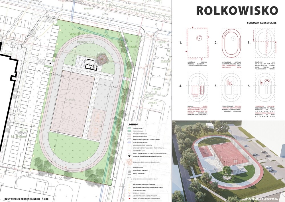 W ramach realizowanej inwestycji powstanie obok rolkowiska o szerokości minimum 4 m, również boisko wielofunkcyjne o nawierzchni tartanowej o wymiarach 40 na 20 m, park do street workoutu, bieżnia dwutorowa oraz stoły do ping-ponga i gry w szachy. Teren, na którym realizowana będzie inwestycja zostanie ogrodzony, oświetlony oraz wyposażony w piłkochwyty i ławki, a na obiekcie powstanie również zaplecze sanitarno - gospodarcze.