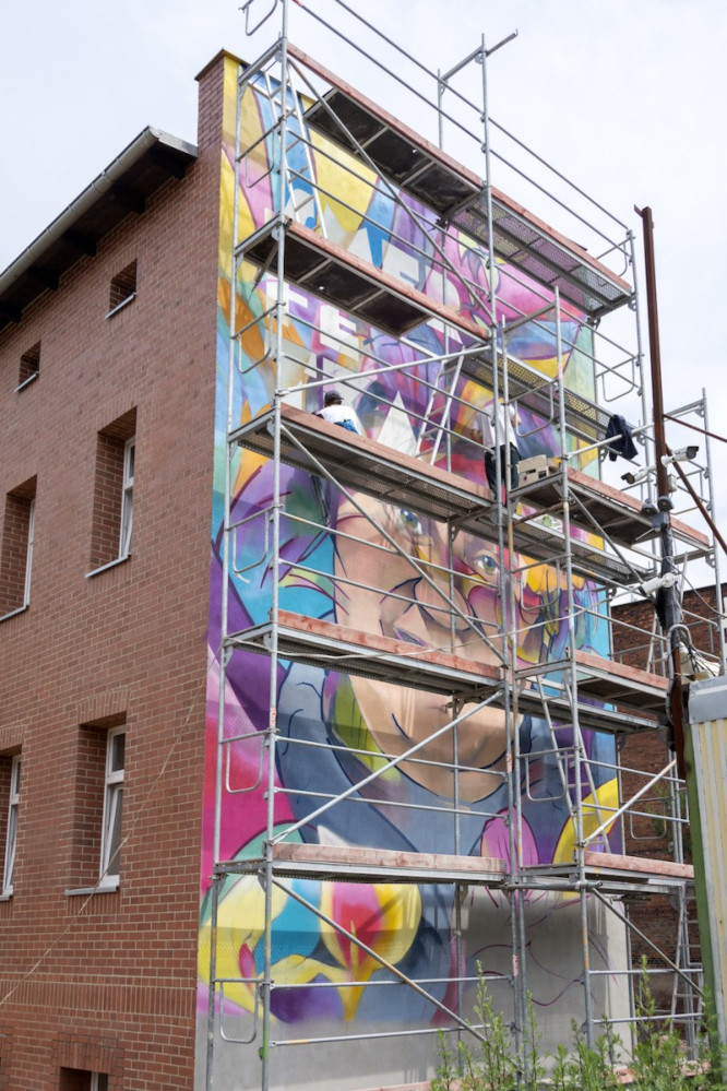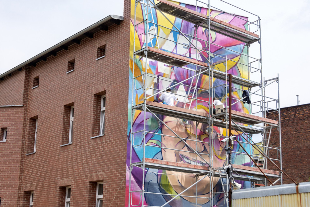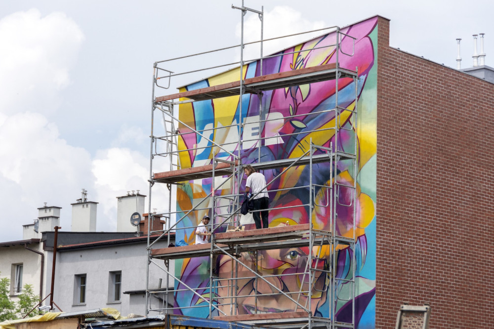 Jeśli pogoda pozwoli, mural będzie gotowy w przyszłym tygodniu. W myśl zasady od ogółu do szczegółu, pracujemy nad gradientem, czyli tak charakterystycznymi dla tej pracy przejściami tonalnymi pomiędzy kolorami i wykańczamy mniejsze powierzchnie - mówi Wojciech Walczyk z grupy Mural.
