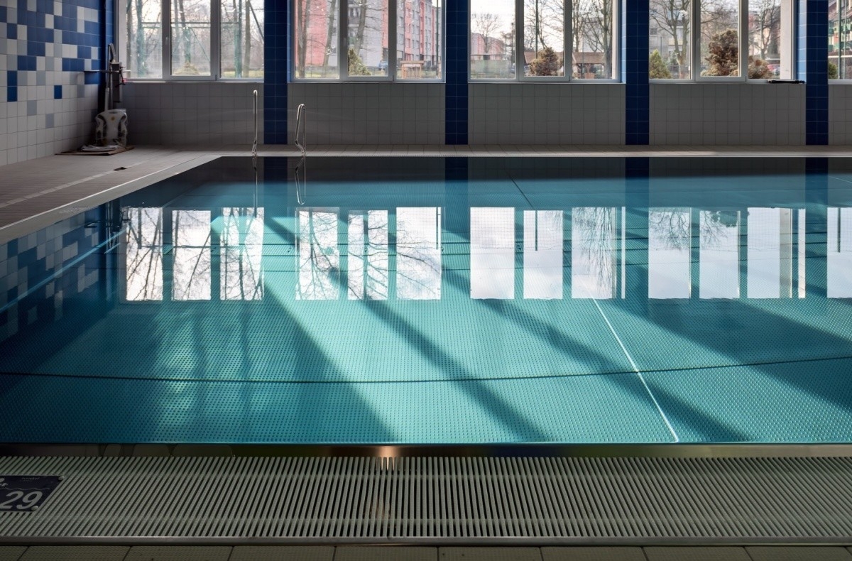 Wykonawca wykonał nową instalację hydrauliczną, wentylację mechaniczną z odzyskiem ciepła, wymienił stację uzdatniania wody basenowej oraz instalację elektryczną wraz z oświetleniem.
