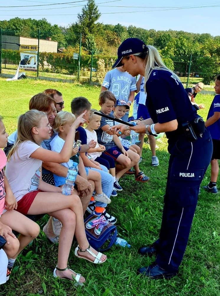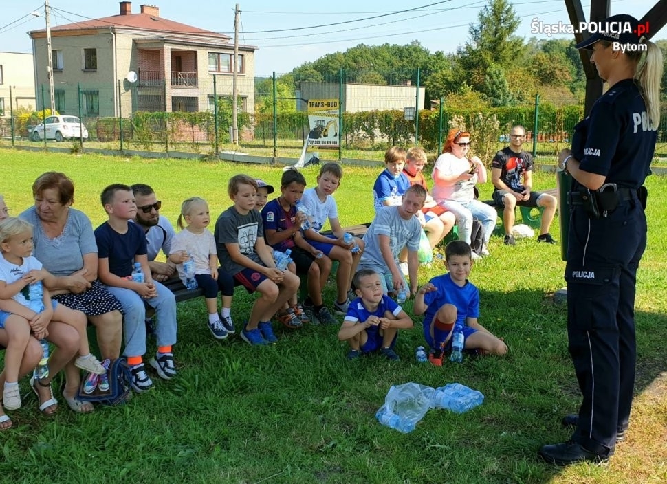 W ramach działań "Kręci mnie bezpieczeństwo...w wakacje" bytomscy policjanci spotkali się z dziećmi. Mundurowi odwiedzili najmłodszych na terenie stadionu Rodło Górniki, podczas zajęć organizowanych w ramach akcji "Lato w Mieście". W trakcie spotkania policjanci poruszali tematykę związaną z bezpiecznym wypoczynkiem. Przypominali, jak bezpiecznie spędzić czas nad wodą, czy w miejscu zamieszkania. Mundurowi zwracali uwagę na konieczność prawidłowego zachowania się na drogach, zarówno przez pieszych, jak i rowerzystów. Apelowali o ostrożność podczas jazdy na rolkach, deskorolkach czy hulajnogach. Przekazali cenne rady i wskazówki, jak zachować się w sytuacjach zagrożenia i gdzie szukać pomocy.