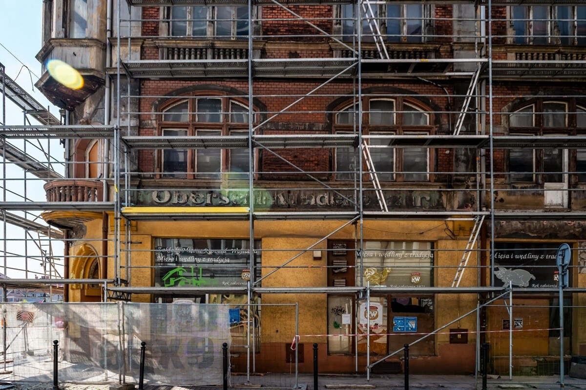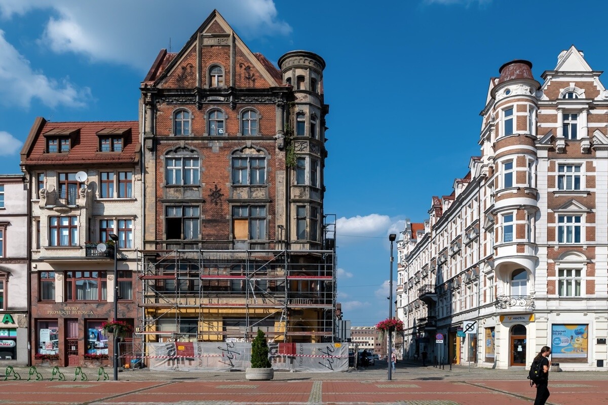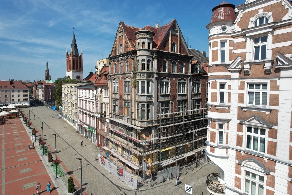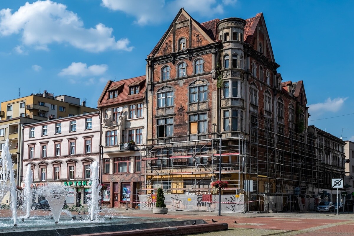 Na monumentalnej, narożnej kamienicy przy ul. Podgórnej 18 pojawiły się rusztowania. Zaczyna się długo wyczekiwany przez bytomian remont elewacji budynku.