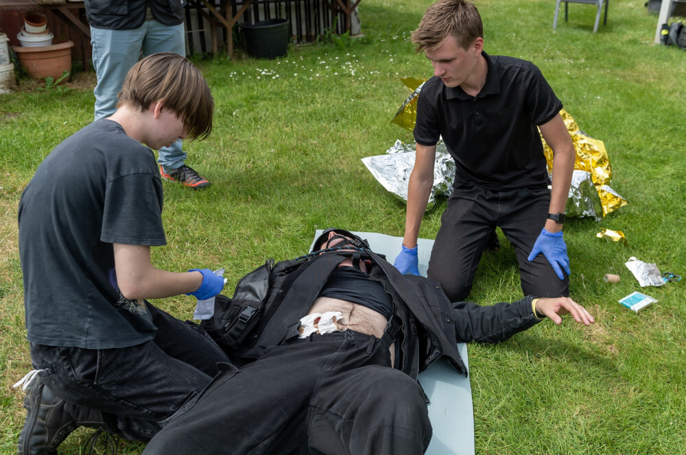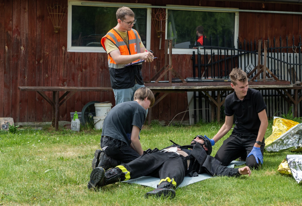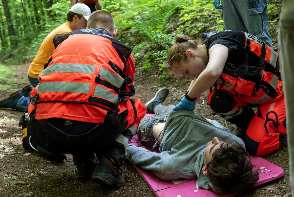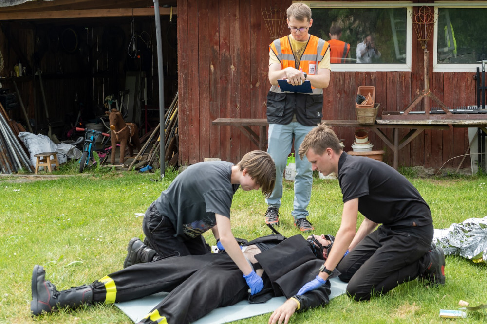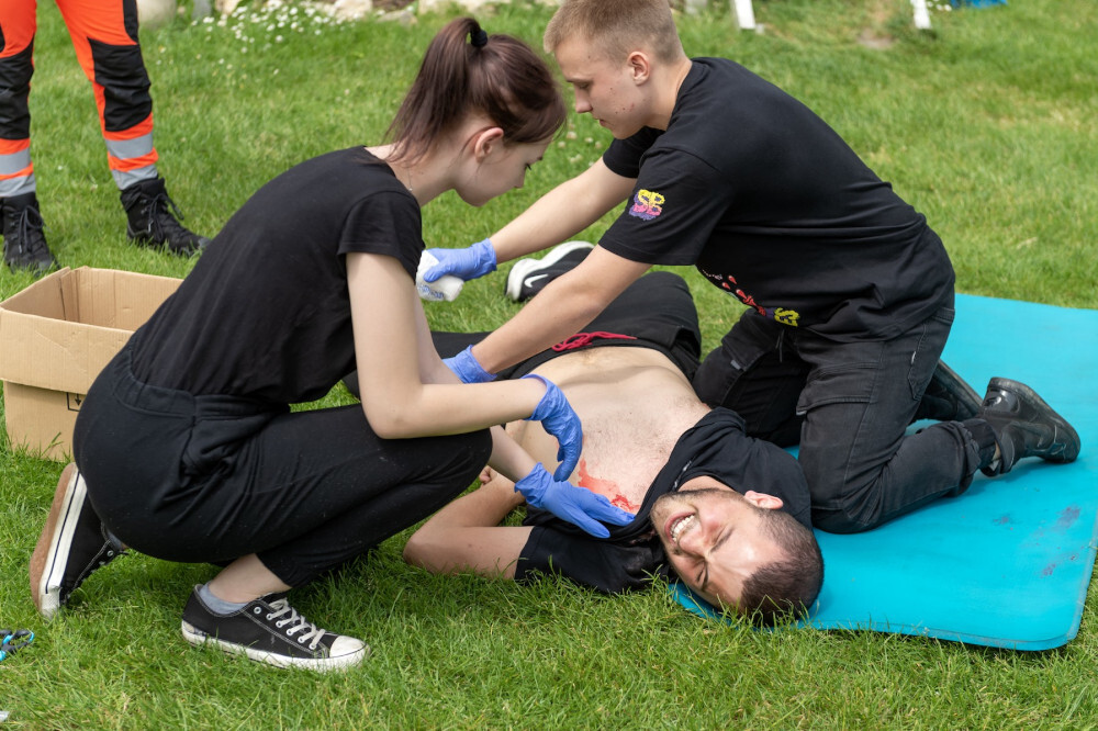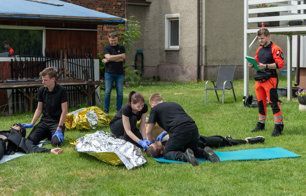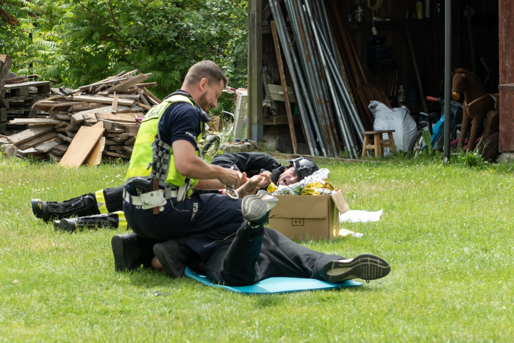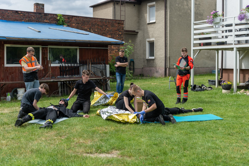 - Uczestnicy mieli urozmaicone zadania, m.in. musieli udzielić pomocy dwóm osobom, które podczas wykopywania metalowego elementu w lesie, ucierpiały, bo doszło do detonacji znalezionego pocisku z czasów II wojny światowej. Z kolei w innym zadaniu podczas próby złapania uzbrojonego sprawcy włamania, doszło do strzelaniny pomiędzy włamywaczem a policją. W wyniku strzelaniny postrzał w brzuch otrzymał interweniujący policjant a włamywacz został postrzelony w klatkę piersiowa. Dodatkowo należało udzielić wsparcia psychicznego lokatorce, będącej w ciąży - mówi Grzegorz Sojka, prezes OSP w Suchej Górze.
