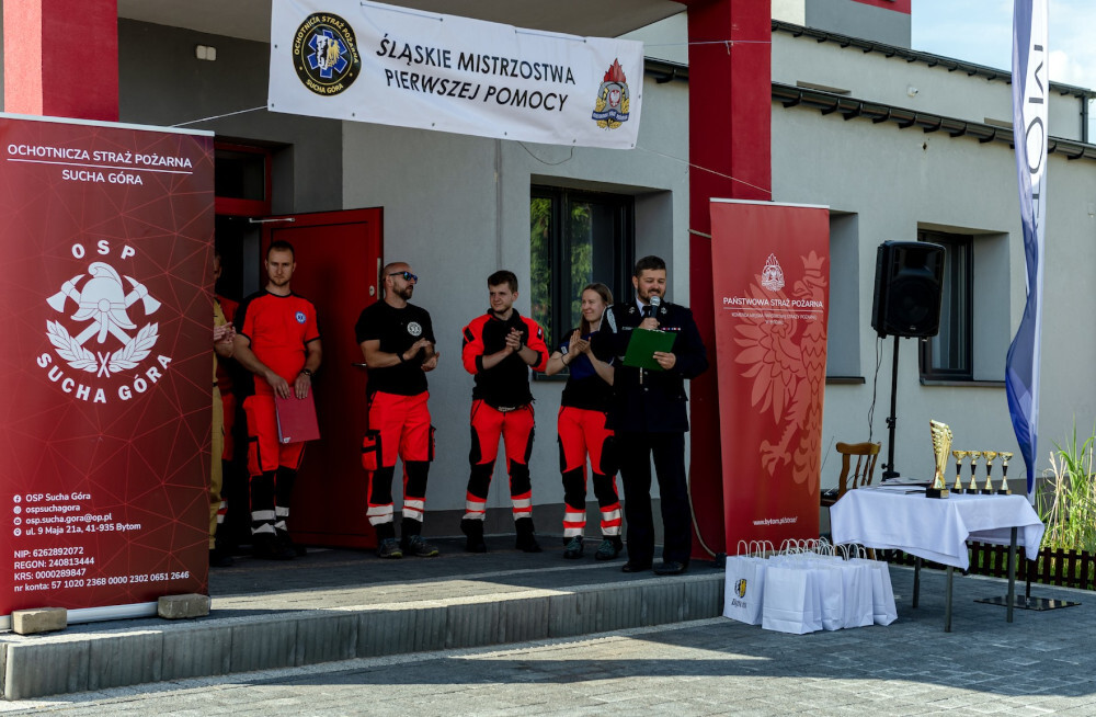 Uczestnicy mistrzostw - organizowanych przez Ochotniczą Straż Pożarną w Suchej Górze oraz Komendę Miejską Państwowej Straży Pożarnej w Bytomiu - musieli wykazać się znajomością zasad pierwszej pomocy oraz zademonstrować, jak potrafią swoje umiejętności wykorzystać w praktyce.