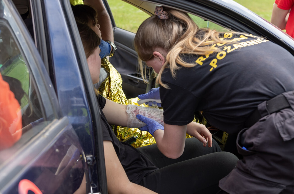 Pomoc rannemu w strzelaninie, poszkodowanemu w wypadku samochodowym, jak również osobie, która ucierpiała podczas detonacji ładunku wybuchowego. To część zadań, jakie musieli wykonać uczniowie w III Śląskich Mistrzostwach Pierwszej Pomocy, które odbyły się w Bytomiu środę, 7 czerwca. Młodzi ratownicy wykorzystali również swoje umiejętności w praktyce, kiedy przed remizą strażacką udzielili pomocy starszej pani, która przewróciła się. Z kolei wracający po zawodach sędziowie obsługujący mistrzostwa pomogli mężczyźnie, który spadł w z wózka inwalidzkiego i ucierpiał. W zawodach wygrali uczniowie XIV Liceum Ogólnokształcącego im. Sucharskiego w Katowicach, którzy wyprzedzili Zespół Szkół Leśnych i Ekonomicznych w Brynku - II miejsce oraz I Liceum Ogólnokształcącego im. Smolenia w Bytomiu - III miejsce.