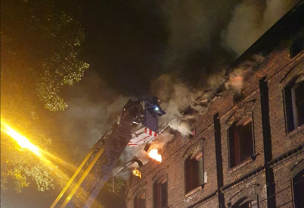 Żywioł szalał na poddaszu budynku mieszkalnego. Ewakuowano 11 mieszkańców, którzy nie odnieśli obrażeń. Trwa szacowanie strat.