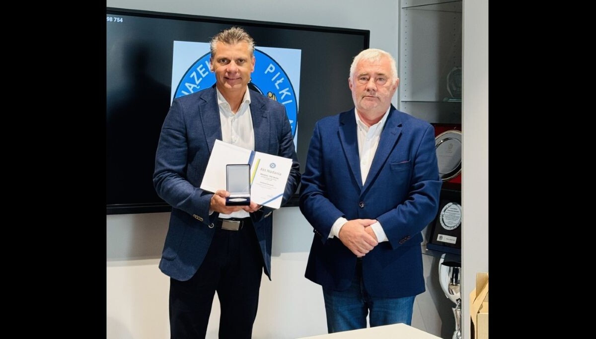 Prezydent Mariusz Wołosz otrzymał z rąk prezesa Śląskiego Związku Piłki Nożnej limitowany medal przyznawany osobom zaangażowanym w rozwój piłki nożnej w naszym regionie.