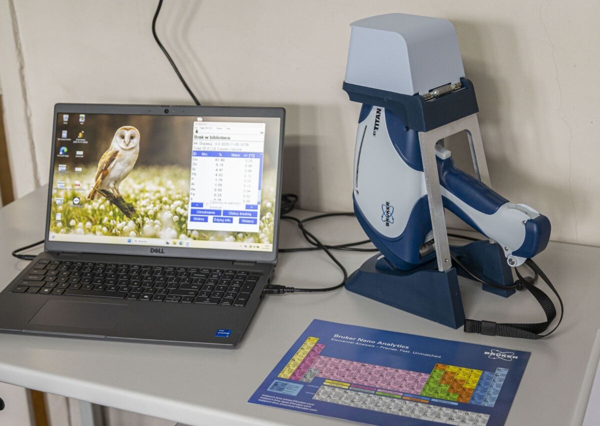 Zakupiony przez muzeum przenośny spektrometr XRF umożliwia szybkie i nieniszczące analizy składu pierwiastkowego zabytków archeologicznych, co ma kluczowe znaczenie dla ich właściwego rozpoznania, dokumentacji i konserwacji.