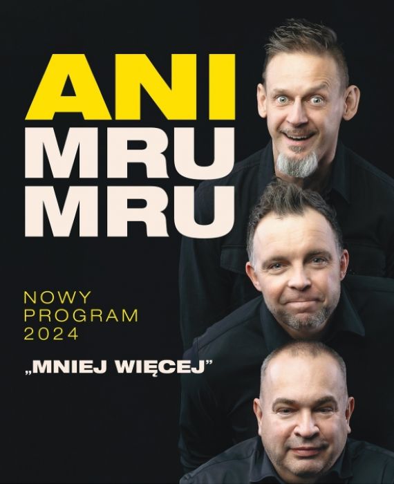 Kabaret Ani Mru Mru ma w swoim dorobku więcej kultowych skeczy niż... zabrakło porównania. Ale panowie z Ani Mru Mru będą mieć masę świetnych puent! W swoim najnowszym programie znów zaskakują, eksplorując absurdy codzienności.