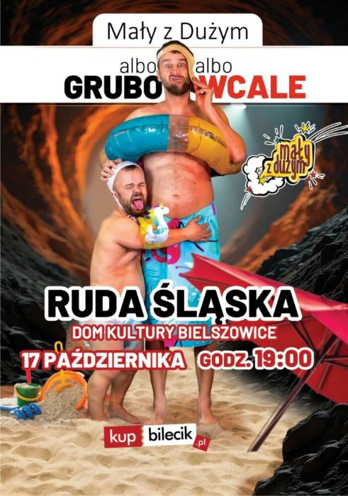 To dwie kontrastowe osoby: Mały (Piotr Nowak) mający niespełna 140 cm wzrostu oraz Duży (Wojciech Niemiec), którego wzrost to niecałe 200 cm. Dwa Ślonzoki „z dziada pradziada”, którzy urodzili się w Rudzie Śląskiej i właśnie w tym miejscu stawiają swoje pierwsze kroki kabaretowe. Cel Małego i Dużego to „podbicie” całego kraju, aby było o nich hucznie i głośno. O czym będzie program „Albo grubo, albo wcale”? To program oparty na pokoleniu, górnictwie, śląskich słówkach i przede wszystkich śląskim humorze bez cenzury. Tego prawdopodobnie w polskich kabaretach jeszcze nie było, ale 5 skeczów będą połączone w całość okazując świat od dziecka, po dziadków.