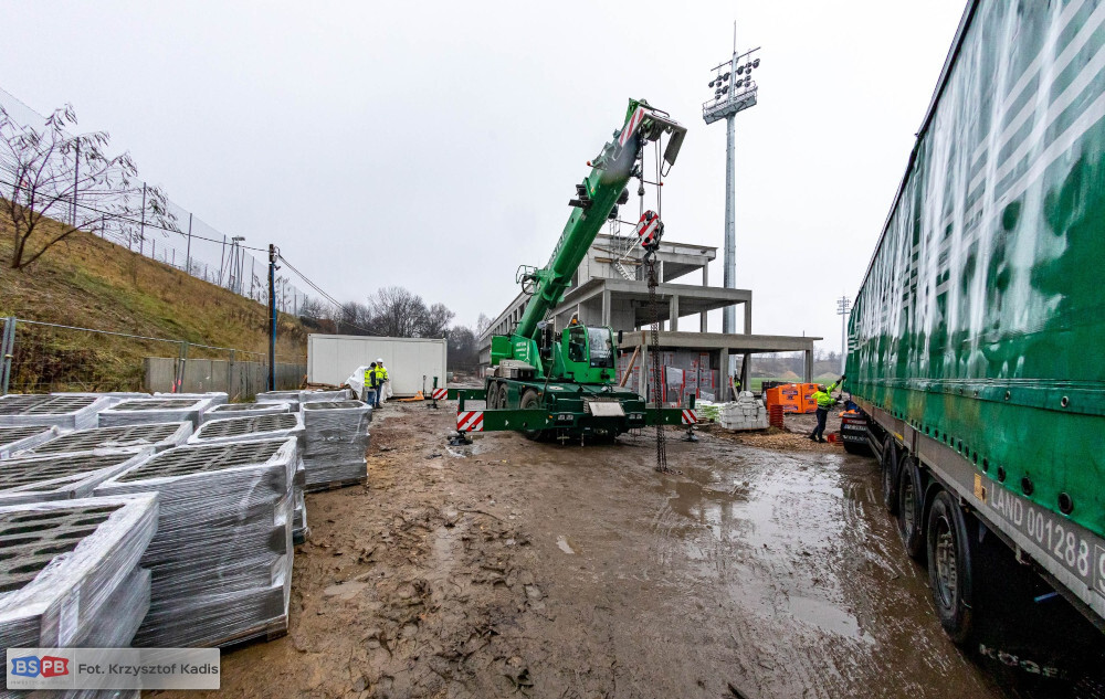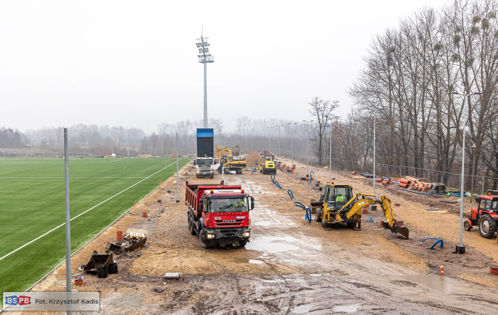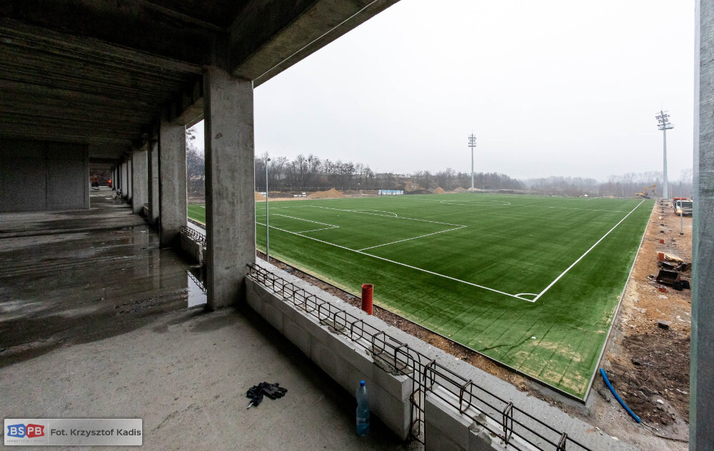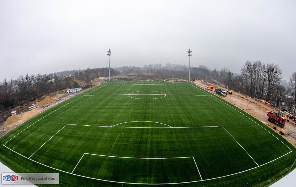 Przy ul. Piłkarskiej trwają prace przy budowie nowego boiska wraz z zapleczem treningowym. Wykonawca inwestycji - firma Tamex Obiekty Sportowe SA zakończyła już prace związane z układaniem mat trawy syntetycznej na boisku piłkarskim oraz wykonała również główne linie pola gry, z częściowym zasypaniem piaskiem kwarcowym i granulatem ułożonej nawierzchni. Łączna długość wykonanych linii to ponad pół kilometra.