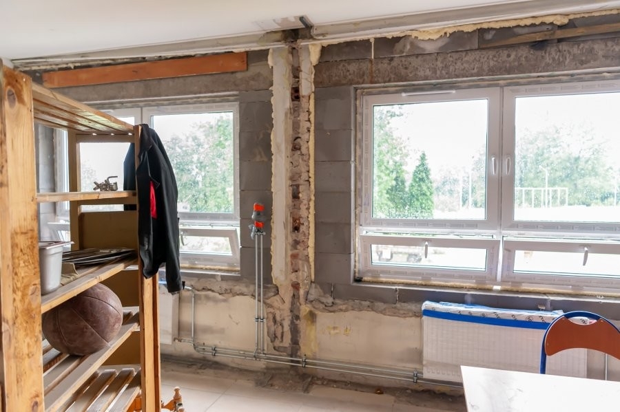Montaż nowej instalacji centralnego ogrzewania, przemurowanie otworów okiennych oraz montaż nowych okien, termoizolacja stropodachu oraz ocieplenie ścian piwnicy. Prace związane z termomodernizacją budynku klubowego Szombierek Bytom przy Frycza-Modrzewskiego idą pełną parą.