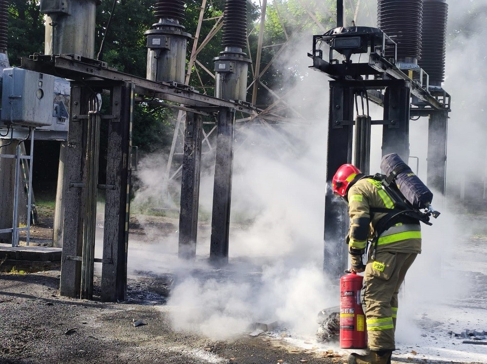 Kiedy strażacy przyjechali na miejsce zdarzenia, potwierdzili, że doszło do wybuchu izolatora zabudowanego na linii 110 kV i w konsekwencji do pożaru oleju transformatorowego. Kiedy strażacy uzyskali potwierdzenie, że zasilania na terenie stacji zostało odłączone, przestąpili do gaszenia pożaru.