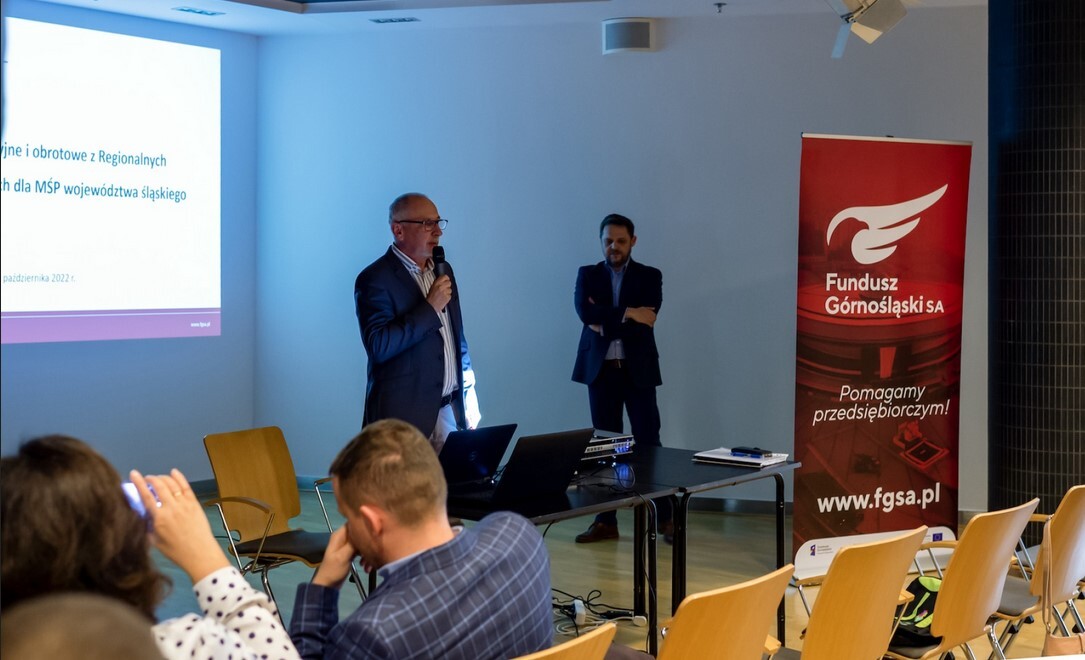 Uczestnicy spotkania mówili także o dotacjach na usługi szkolenie i doradcze dla MŚP województwie śląskich, pożyczkach inwestycyjnych i obrotowych z Regionalnych Funduszy Pożyczkowych dla MŚP województwa śląskiego, wsparciu rozwoju firm w obszarze internacjonalizacji - ofercie sieci Enterprise Europe Network dla MŚP z województwa śląskiego, programach wsparcia eksportu dla MŚP województwa śląskiego z projektu Global Silesia i InterSilesia, jak również poręczeniach kredytów, pożyczek, leasingów, zapłaty wadium oraz należytego wykonania umowy.
