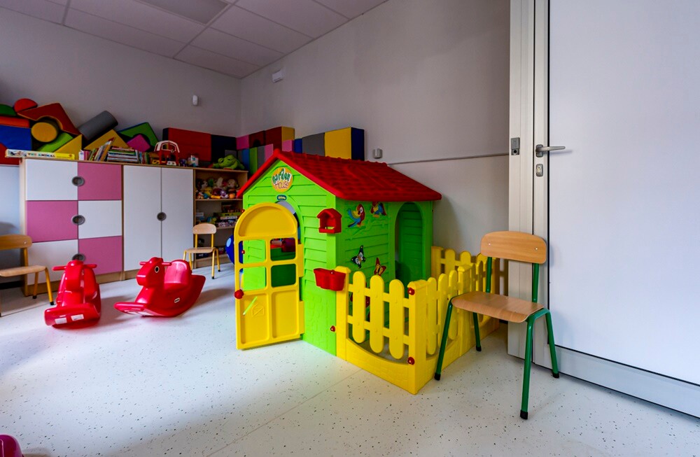Komfortowym rozwiązaniem z perspektywy realizowanych zadań, także adresowanych do osób z ograniczoną władzą rodzicielską, są specjalnie zaaranżowane w strefę zabawy, pokoje widzeń wyposażone w lustra weneckie.