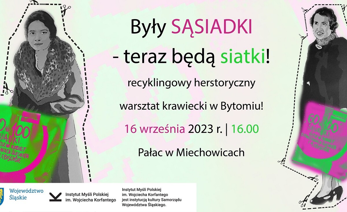 Instytut Korfantego będzie również obecny w tym przedsięwzięciu poprzez organizację warsztatu krawieckiego „Były SĄSIADKI – teraz będą siatki!”. Podczas warsztatu przekształcimy roll-upy i banery w kolorowe i oryginalne eco-torby o niezwykłym dizajnie. To kontynuacja pomysłu zapoczątkowanego podczas finisażu wystawy „60 na 100. SĄSIADKI. Głosem Kobiet o powstaniach śląskich i plebiscycie", który odbył się w sierpniu w Gliwicach.