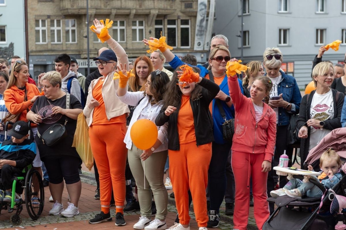Kolor pomarańczowy, będący znakiem solidarności z osobami z niepełnosprawnością intelektualną, był kolorem dominującym na bytomskim Rynku, gdzie zatańczyli podopieczni OREW-u, ich rodzice oraz kadra ośrodka, a także inne bytomskie placówki oświatowe i samopomocowe oraz przedstawiciele władz samorządowych.