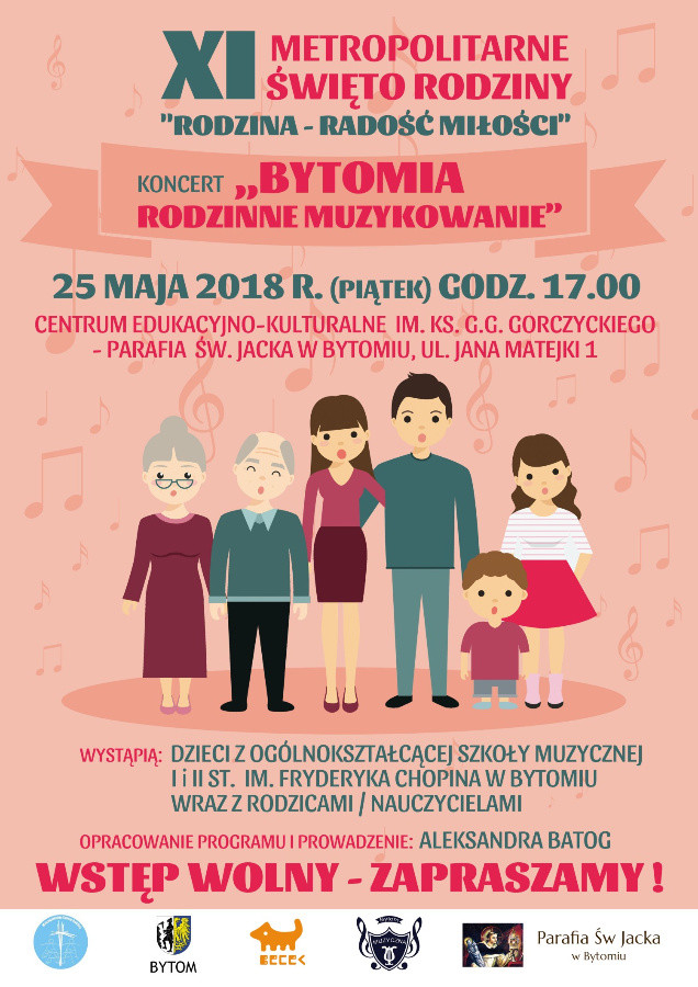 Zapraszamy 25 maja o 17.00 na koncert "Bytomia Rodzinne Muzykowanie" w ramach XI Metropolitarnego Święta Rodziny.