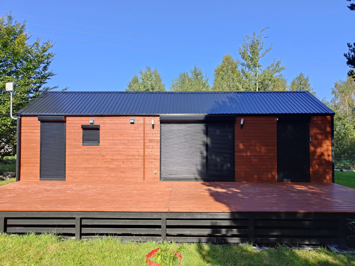 Domki mobilne Mobildom to połączenie nowoczesnych rozwiązań technicznych z tradycyjnym rzemiosłem. Każda konstrukcja osadzona jest na stalowej ramie z kołami, co zapewnia jej mobilność, jednocześnie nie rezygnując z solidności i trwałości. Ściany zewnętrzne wykończone są wysokiej jakości skandynawską deską elewacyjną, a izolacja z wełny mineralnej (standardowo 10 cm w ścianach i 15 cm w dachu) gwarantuje doskonałe parametry termiczne.