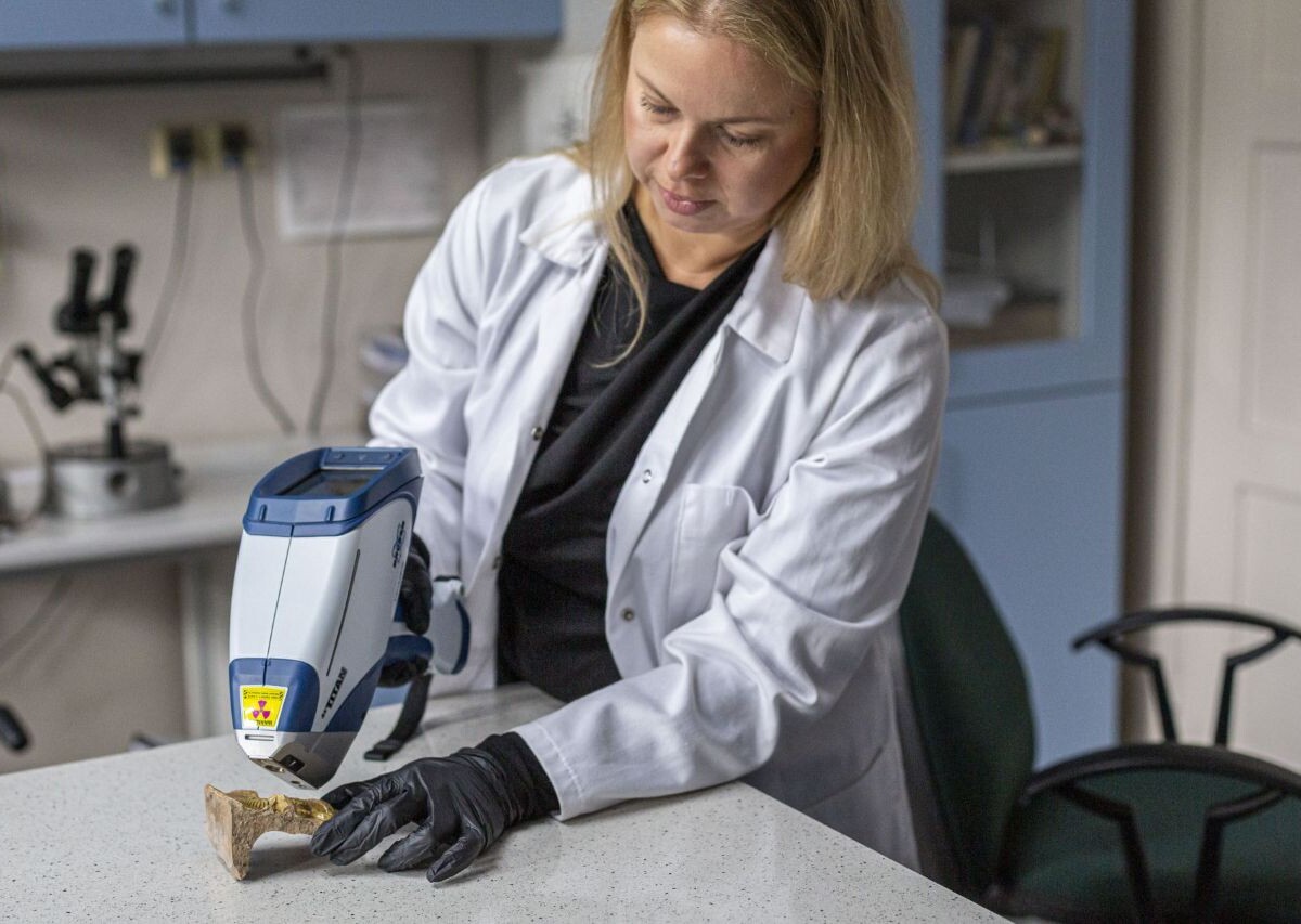 Zakupiony przez muzeum przenośny spektrometr XRF umożliwia szybkie i nieniszczące analizy składu pierwiastkowego zabytków archeologicznych, co ma kluczowe znaczenie dla ich właściwego rozpoznania, dokumentacji i konserwacji.